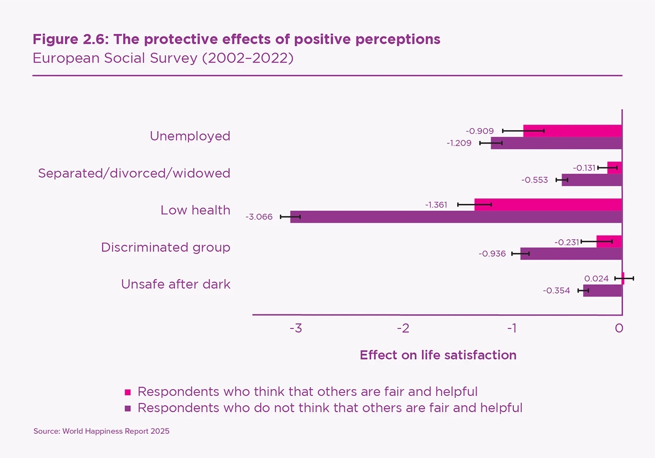 Another central social issue relates to the distribution of wellbeing. We have previously shown that within-country inequality of wellbeing has been increasing over the past twenty years and that this inequality is less in high-trust environments. This year, we show how living in a society believed to be benevolent mitigates the harmful effects of unfortunate circumstances and thereby reduces the inequality of wellbeing.