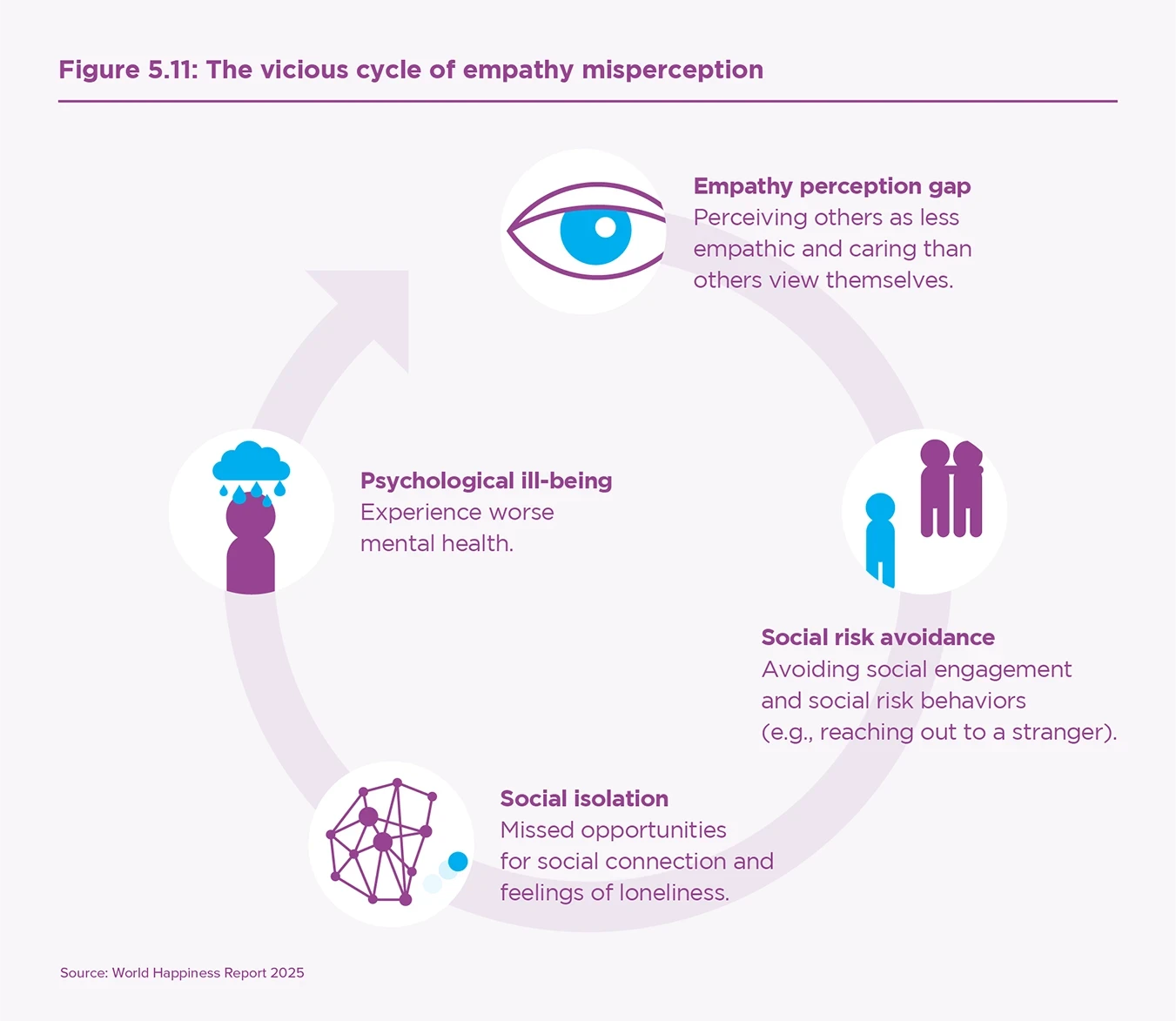 - Many young adults underestimate their peers’ empathy, leading them to avoid connecting with others and miss out on opportunities for meaningful relationships.