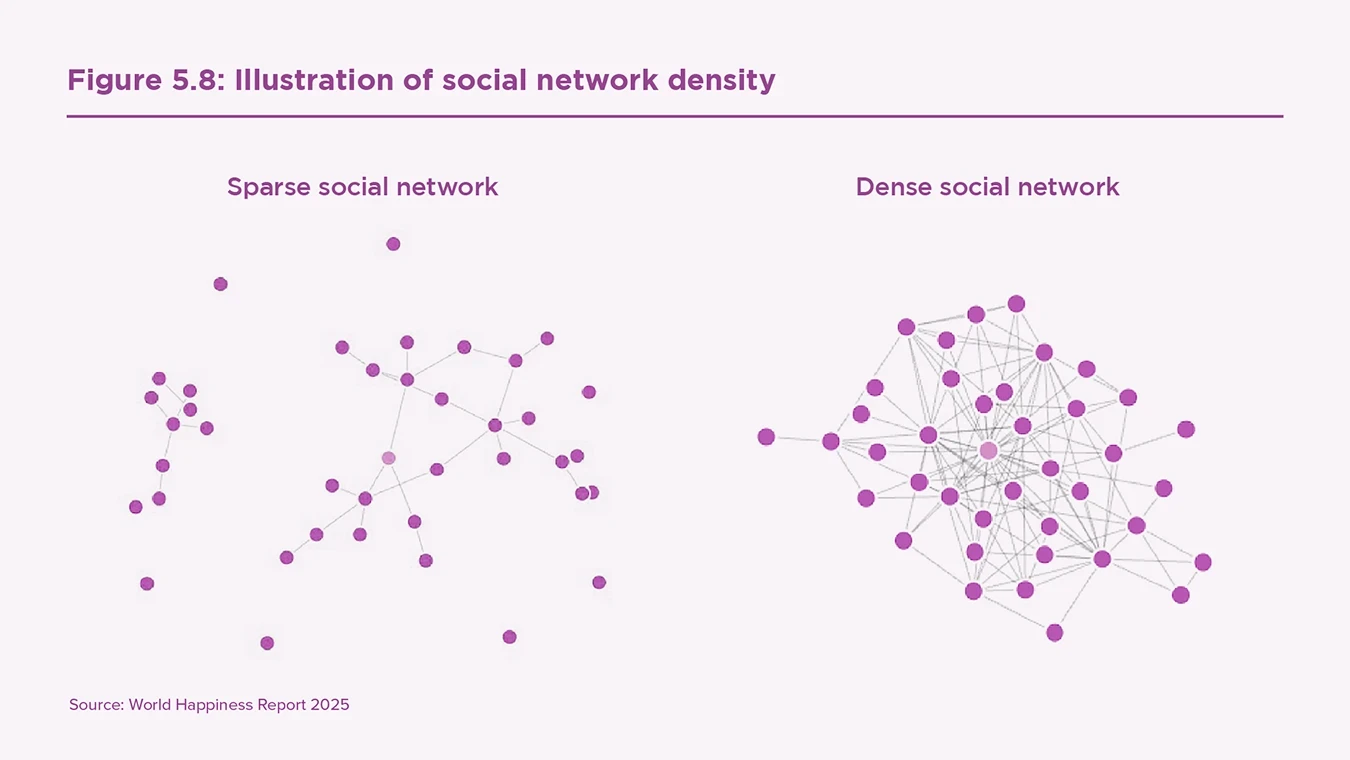 A recent analysis including over 24,000 adults in England paints a nuanced relationship between social network diversity and subjective wellbeing.[57] While some level of network homophily (similarity between contacts) is linked with better wellbeing, social networks that are excessively homogeneous can undermine happiness. This finding underscores that a balance between homophily and diversity – combining in-group familiarity and out-group variety – may offer the greatest advantages and enhance subjective wellbeing.