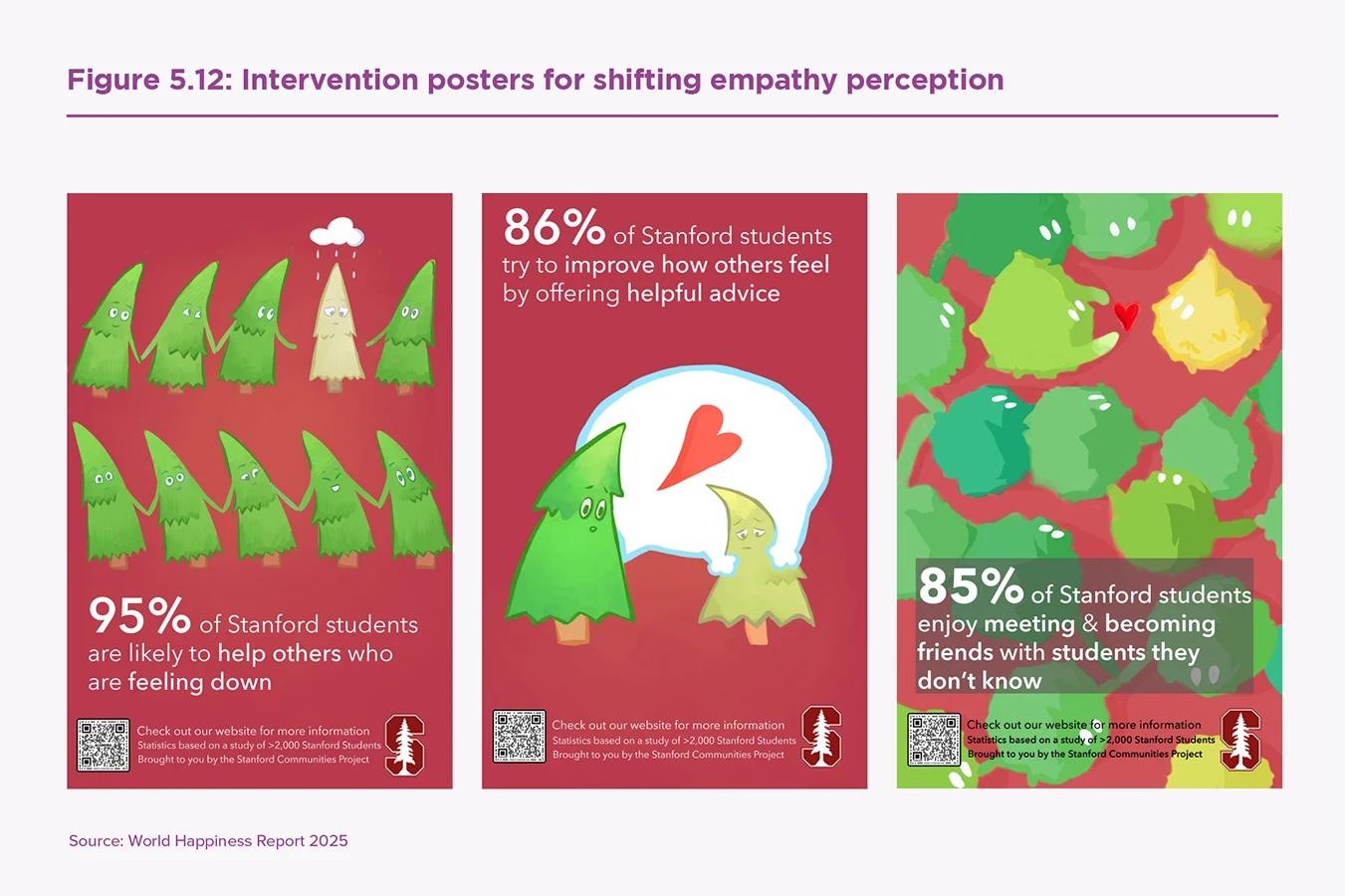 - Interventions can bridge this ‘empathy perception gap’: Field interventions that teach young adults about the empathy and care of their community can promote social connection. Undergraduate students exposed to these interventions see others as more empathic and are more likely to make new connections and build larger social networks.