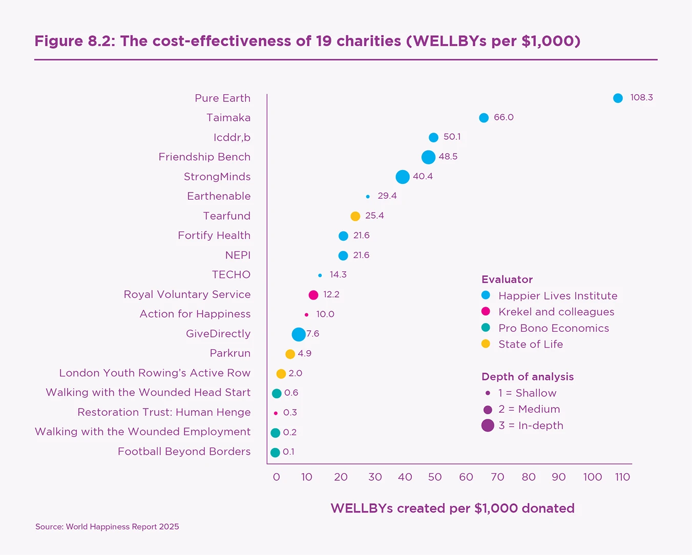 However, there are many worthy problems in the world, our resources are limited, and we don’t want to waste our money. So, how can you get real change for your dollar? More specifically, how can you make the biggest difference to world happiness with what you have to spare?